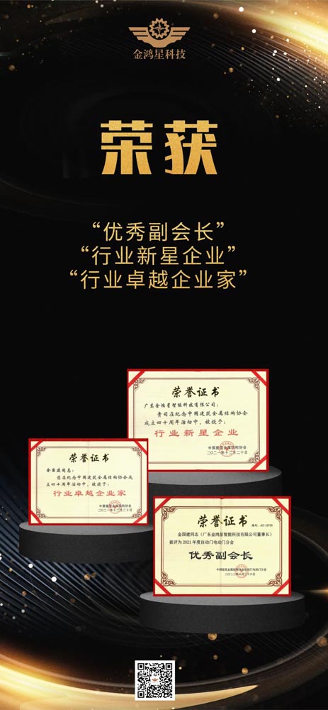 据悉,“行业新星企业”旨在通过奖项评选、挖掘更多推动行业发展的企业及创新技术与产品,鼓励行业创新、促进行业良性竞争。多年来,金鸿星始终怀抱「为用户提供安全、智能、便捷的电动门」为初衷,围绕产品研发、智能制造,不断推陈出新。2021年以来,金鸿星以强大的综合实力,收获“广东省知识产权示范企业”、“佛山专精特新企业”、“全国自动门电动门金盾奖”等荣誉,持续焕发品牌新活力,铸就行业卓越影响力。