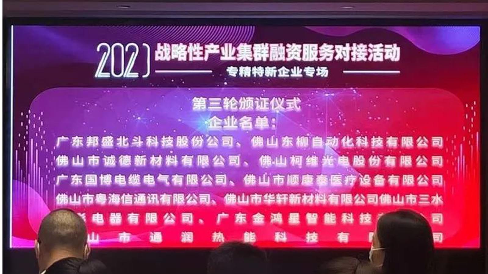 近日,金鸿星智能科技有限公司成功获得佛山市工业和信息局发布2021年佛山市专精特新企业认定并颁发佛山市专精特新企业证书。