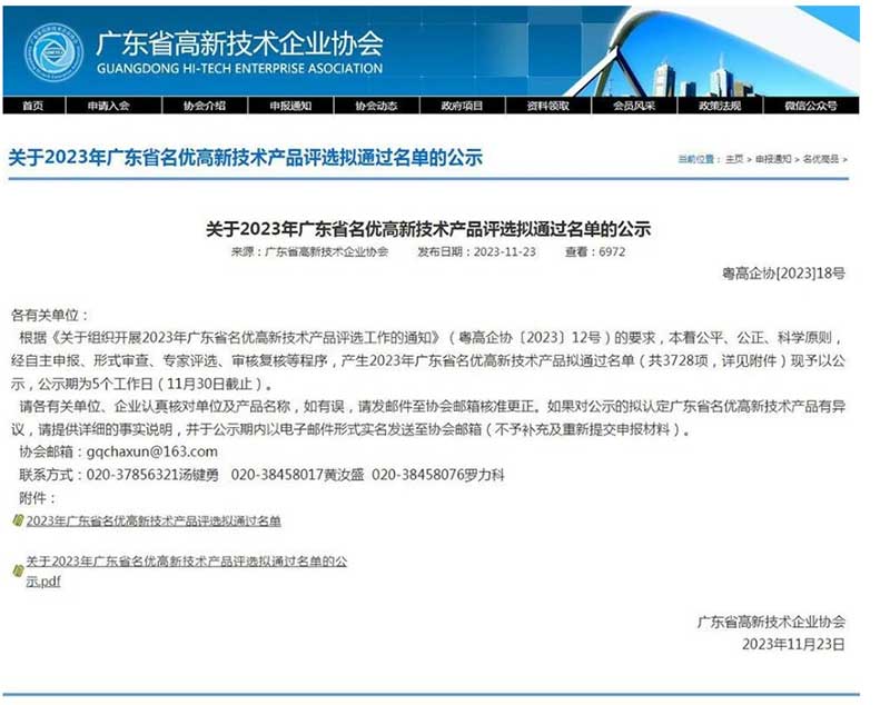 近日,广东省高新技术企业协会公示了《2023年广东省名优高新技术产品拟通过名单》,广东金鸿星智能科技有限公司研发的超级“星”智能电动门产品凭借卓越的创新和优异的性能,成功入选目录名单。