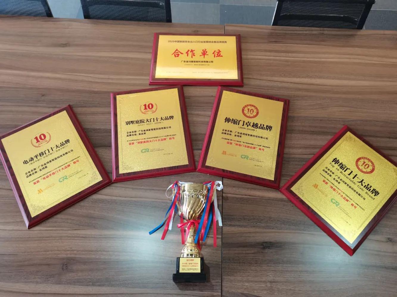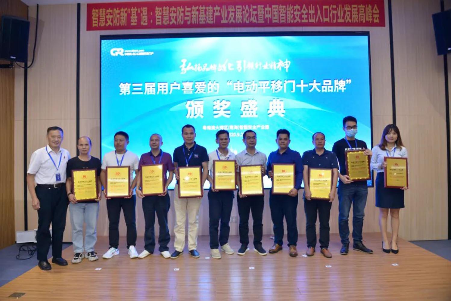 峰会上,广东金鸿星智能科技有限公司荣获中出网-出入口设备行业门户合作单位。在中国伸缩门网举办的评选活动中,我公司一举斩获“伸缩门卓越品牌”、“伸缩门十大品牌”、“电动平移门十大品牌”“别墅庭院门十大品牌”等奖项,载誉而归。
