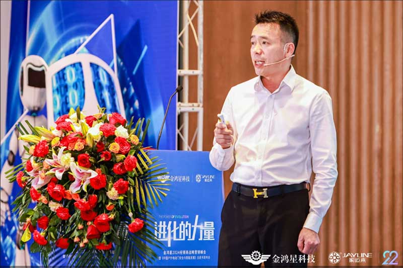 接下来金鸿星销售总监杨杰坚为我们发布全系列产品上新以及分享销售技巧,智能科技与时尚完美结合,定位是同质化竞争和独特卖点,全方位营销卖点和焦点,把同样的产品从不同的角度看出不同的感觉,在消费者的需求下给出专业的建议,给消费者多方面的了解产品的本质和优势。